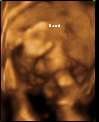 I had a feeling it was curled in a little ball because it felt different compared to the other kids. Also, I find it very painful at times and during the u/s saw why. I kept thinking it was kicking and punching my round ligaments. But nope, I sat and watched the moment that it turned its head, arched as far back as it could and stretch!!! THAT is painful–so all this time it’s actually the stretching that has been so painful and those aren’t kicks and punches I’m feeling on those round ligaments, it’s a tiny bottom pushing back against them.