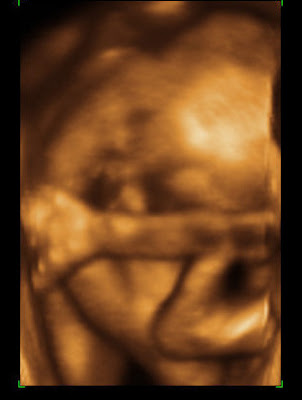 As for the gender, when it wasn’t stretched out, it was in such a tight ball that the u/s tech said there’s just no way we’re going to know the gender until he or she comes out. So, that’s it. One would think the baby would be more comfortable flipping around, but nope, it likes curling up and moving around as a yoga/pilates expert. As much as the u/s tech said she couldn’t see anything, I swear I saw boy parts, but Andrew says my mind is playing tricks on me.