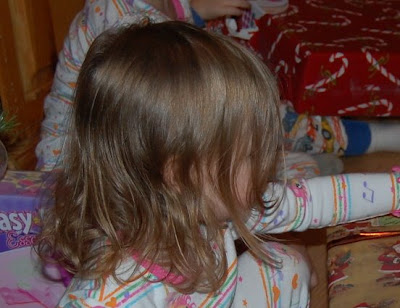 I didn’t take my camera with me to the salon, but I do have some pics from Christmas, so with a little cropping, they’ll do for before pics. 🙂