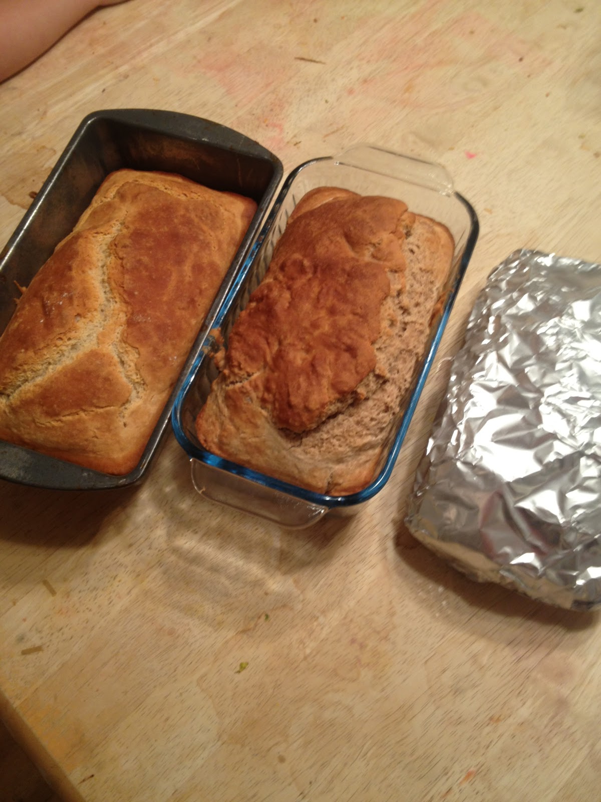 | A variety of breads. When we need a loaf, we pull one from the freezer. Three loaves will last about a week. We also freeze muffins, waffles, and other breakfast breads. |