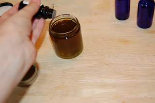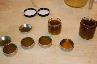 To make the salve I used the herbs, olive oil, and beeswax. I added Lavender essential oil before it cooled, so it smells lovely.