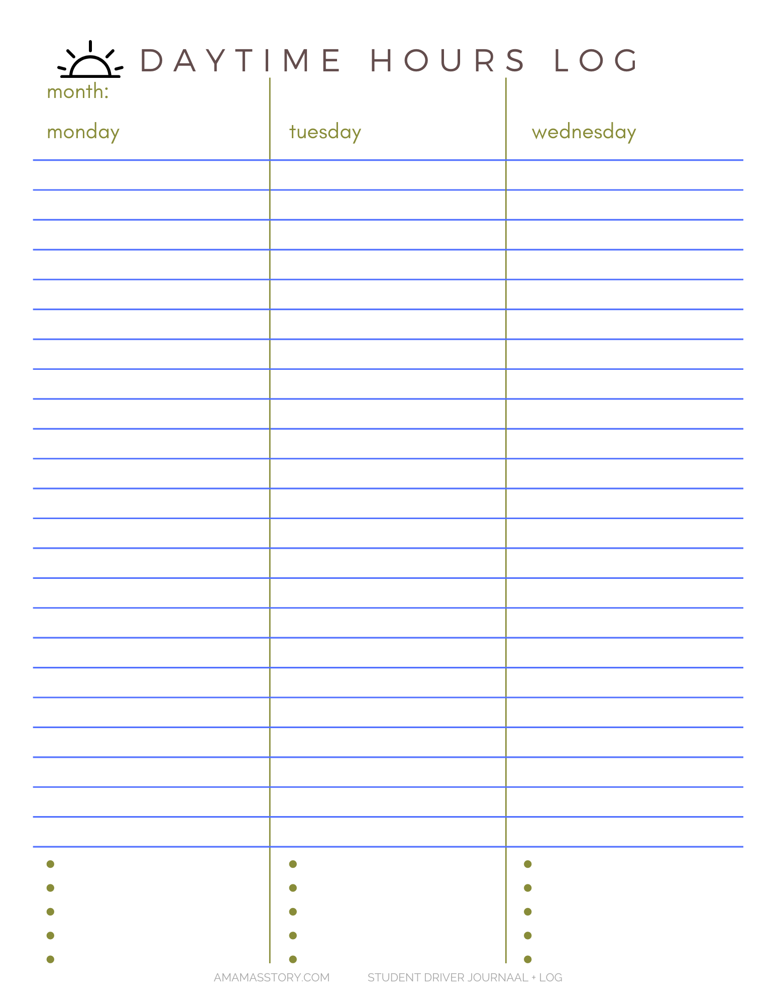 The variety of templates available in the Student Driver Journal + Log were made to help keep you and your new driver organized. These printables can be conveniently printed and kept in a pronged folder, binder, or spiral bound. Your student can easily keep track of state laws, their driving hours, who rode with them, goals to reach, and keep any notes. If your state requires your Student Driver to turn in documentation to show proof of practice, these templates will be all you’ll need!