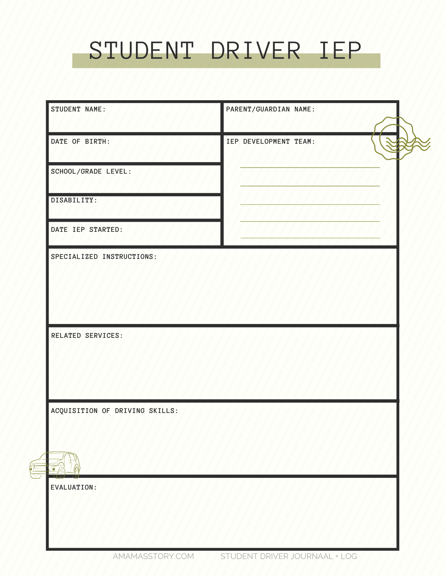 In the event you have a special needs driver, you’ll have printables just one click away to help you create a specialized IEP, keep up with important contacts, keep track of any necessary (or required) resources, and more.