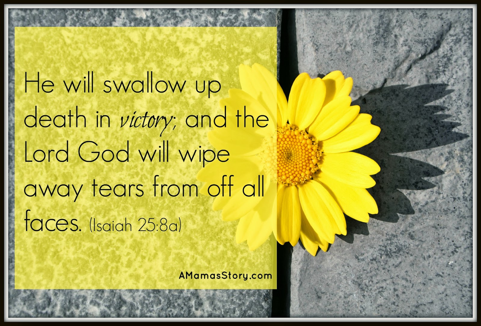 He will swallow up death in victory; and the Lord God will wipe away tears from off all faces; and the rebuke of his people shall he take away from off all the earth: for the Lord hath spoken it. Isaiah 25:8